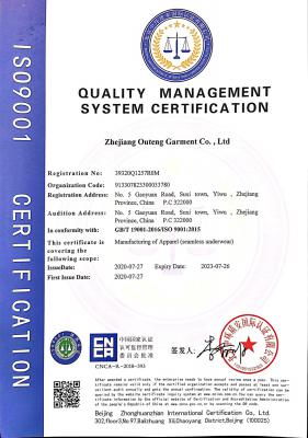 浙江歐騰服飾有限公司位于世界小商品之都-義烏。創(chuàng)立于2015年,是一家專業(yè)生產(chǎn)無縫針織運(yùn)動服飾和內(nèi)衣的工貿(mào)一體企業(yè),擁有自主出口權(quán)。 工廠的占地面積約16000平方米 ,引進(jìn)了大型圣東尼、高騰等多種先進(jìn)的制衣設(shè)備300余臺。月產(chǎn)能可達(dá)90萬件。 歐騰服飾每年投入近百萬資金打樣開發(fā)新產(chǎn)品,有著一支高素質(zhì)設(shè)計、技術(shù)員工隊伍。工廠先后通過了ISO 9001質(zhì)量管理體系認(rèn)證、BSCI認(rèn)證、GRS認(rèn)證、OEKO-TEX國際生態(tài)紡織品認(rèn)證等多項專利檢測報告??商峁㎡EM&ODM服務(wù)。歐騰服飾以一套完整、科學(xué)的質(zhì)量管理體系,生產(chǎn)的服裝從原材料紗線到成衣,質(zhì)量完全能夠滿足國內(nèi)、國際質(zhì)量要求。獲得了客戶一致好評。工廠先后獲得省科技型企業(yè)、國家高新企業(yè)、義烏市誠信講信用單位、規(guī)上企業(yè)、信用AAA級等榮譽(yù)。